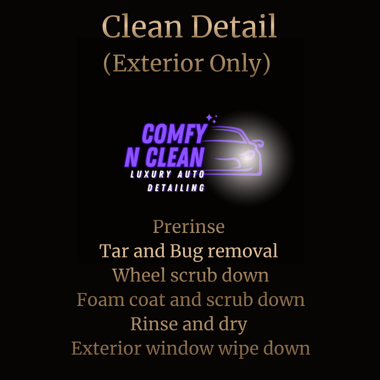 Whether you’re maintaining your vehicle or preparing it for a special occasion, our Exterior Detail delivers professional results with the integrity and excellence you can expect from Comfy N Clean.