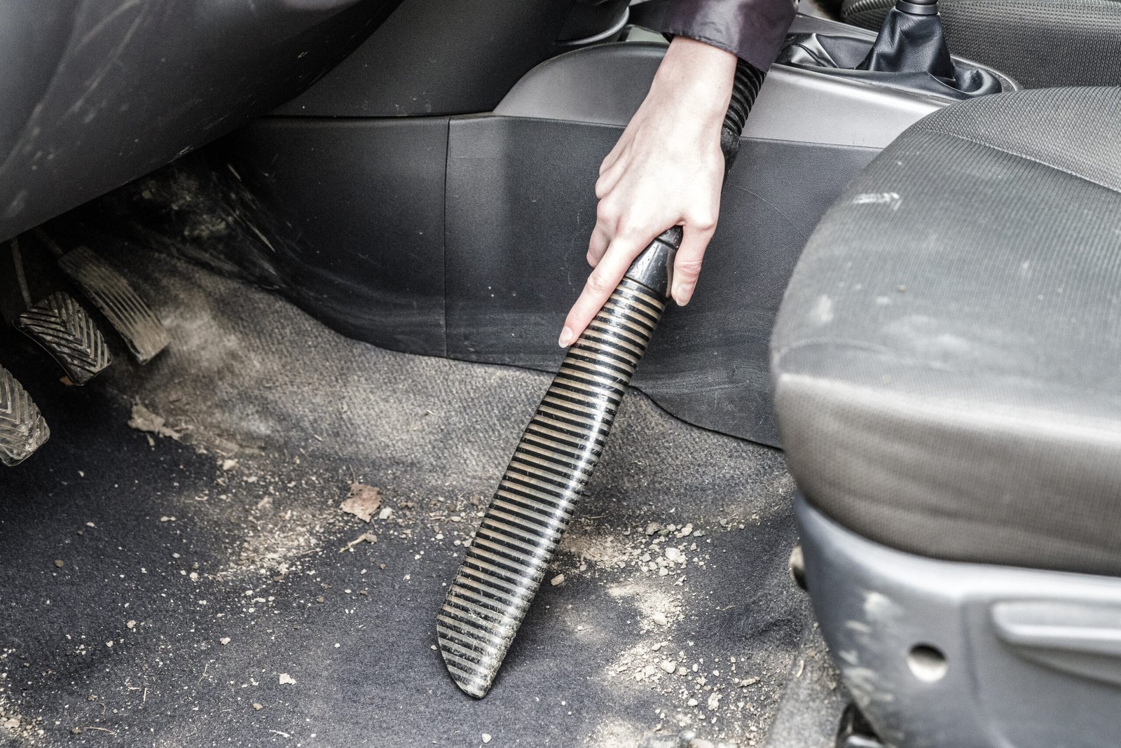 • What it is: Multiple dark stains (coffee, soda, etc.) or moderate mud tracked onto the carpets and floor mats.